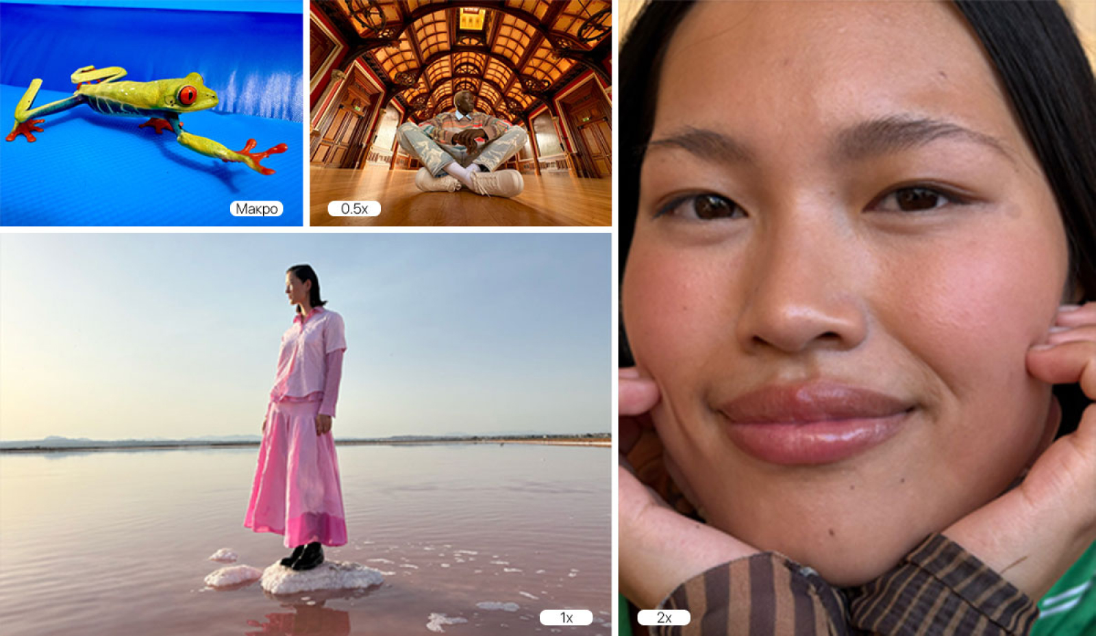 Приложите все усилия, чтобы получить идеальный снимок. Универсальная новая система камер iPhone 16 делает прекрасные фотографии — как с близкого, так и с дальнего расстояния. Две в одной камеры Fusion 48 Мп позволяют делать потрясающие снимки сверхвысокого разрешения или увеличивать масштаб с помощью 2-кратного оптического телеобъектива. Сверхширокоугольная камера снимает макроснимки с экстремально крупным планом или более широкие, более обширные снимки. В целом, это как иметь четыре объектива в кармане . А с помощью пространственной съемки вы даже можете снимать фотографии и видео в 3D, которые можно просматривать с помощью Apple Vision Pro.