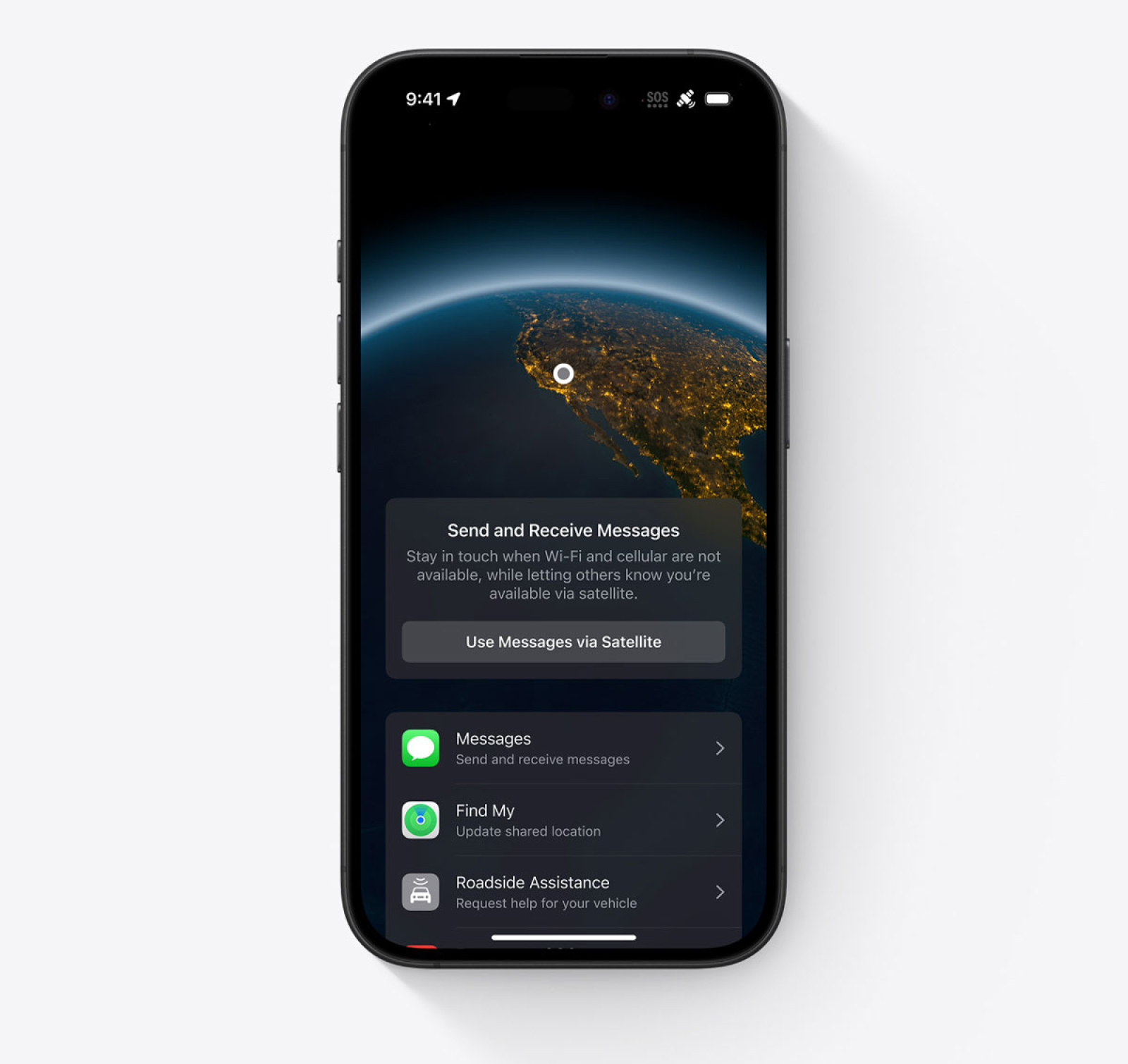 Если у вас нет сотовой связи или Wi-Fi, iPhone 16 может подключиться к спутнику , чтобы вы могли оставаться на связи или получать необходимую помощь. Спутниковая служба помощи на дороге может оказать вам помощь в таких ситуациях, как спущенная шина или разряженный аккумулятор автомобиля. iPhone свяжет вас с поставщиком услуг помощи на дороге, который может направить помощь по указанному вами адресу — даже если вы находитесь вне зоны действия сети