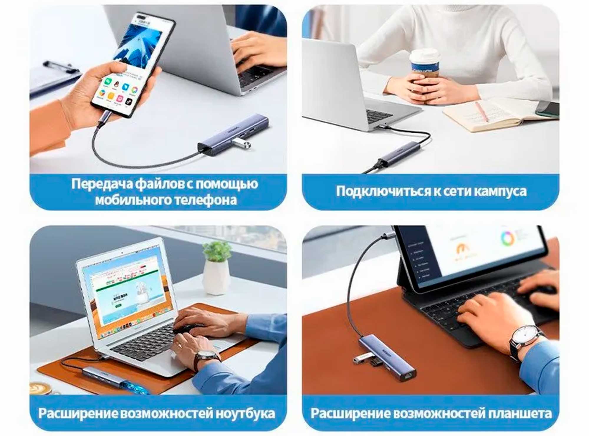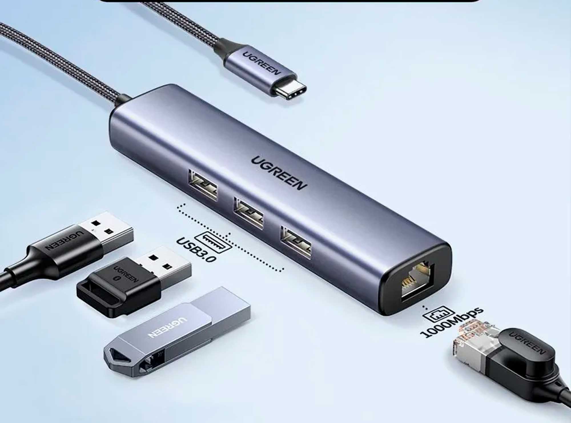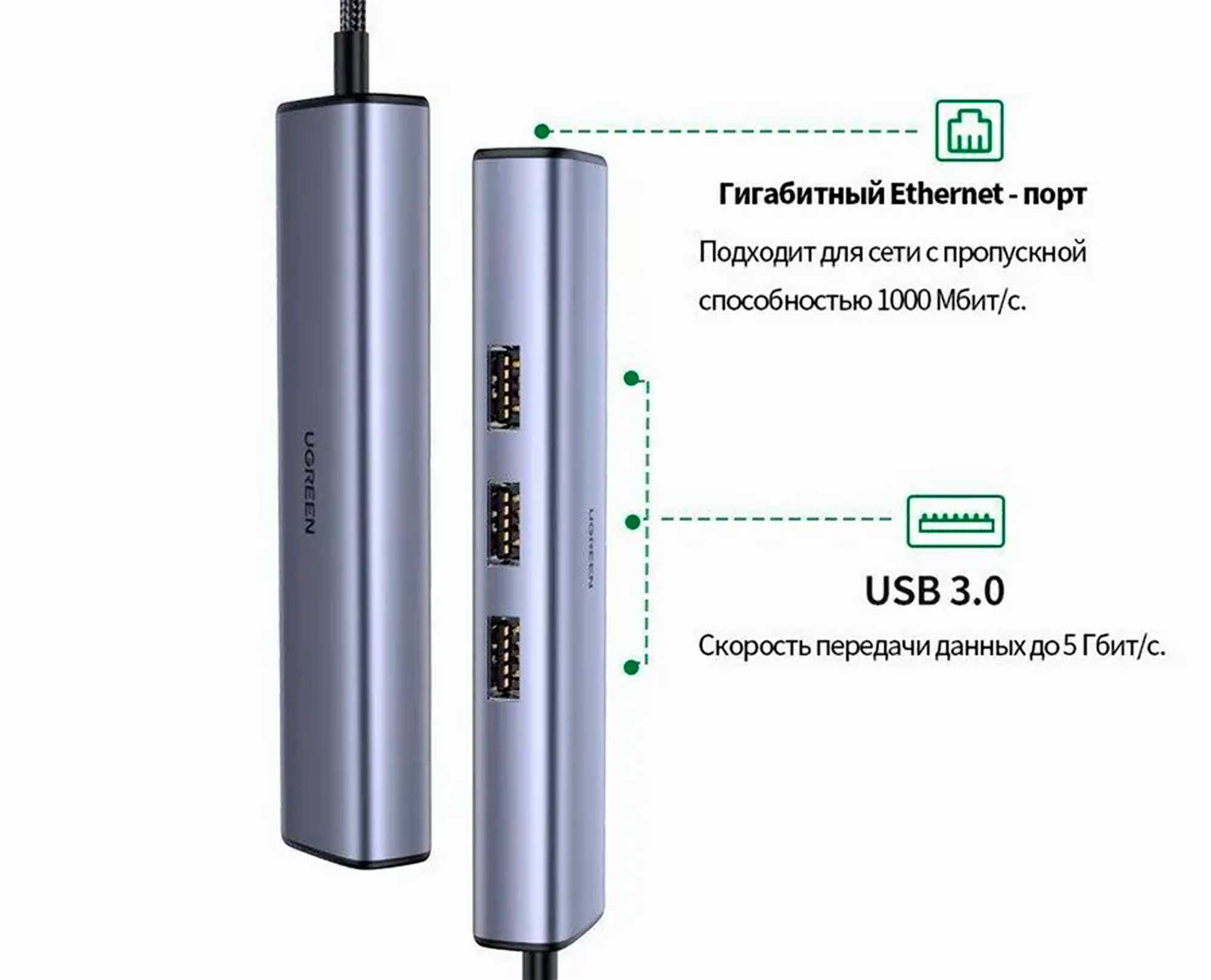 Мультифункциональная док-станция с переходом от Type-C к трем интерфейсам USB 3.0 и сетевым адаптером. Корпус выполнен из алюминия. Предназначена для расширения интерфейсов ноутбуков с Type-C, добавления проводного сетевого порта и USB-портов. Поддержка Gigabit Ethernet до 1 Гбит/с обеспечивается через проводное сетевое соединение. Обеспечивает полную производительность Ethernet 10/100/1000 Мбит/с, что делает этот сетевой USB C адаптер более быстрым и надежным, чем большинство беспроводных соединений.