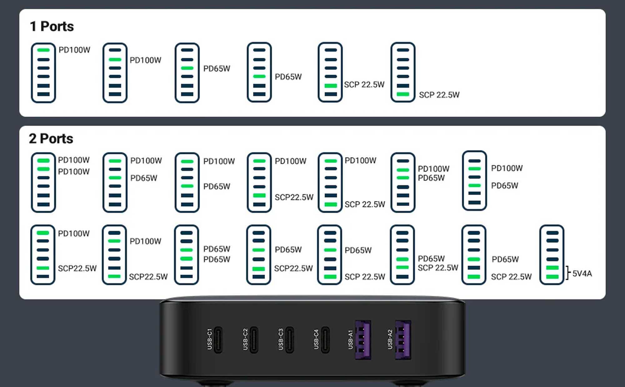 Обеспечивает исключительную производительность зарядки нескольких устройств, идеально подходит для смартфонов, ноутбуков, планшетов и других устройств