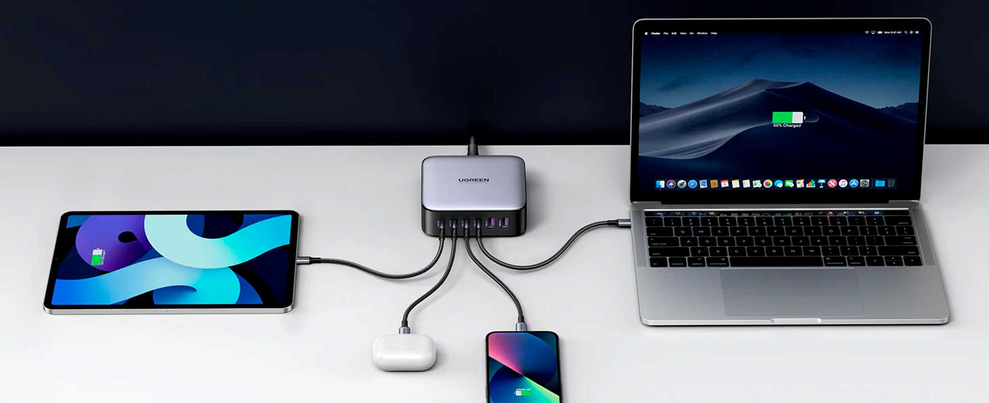 Разместите все устройства в пределах досягаемости, организуйте «джунгли проводов» и сэкономьте ценное место на столе. В комплект входит кабель USB-C длиной 1 метр мощностью 100 Вт.