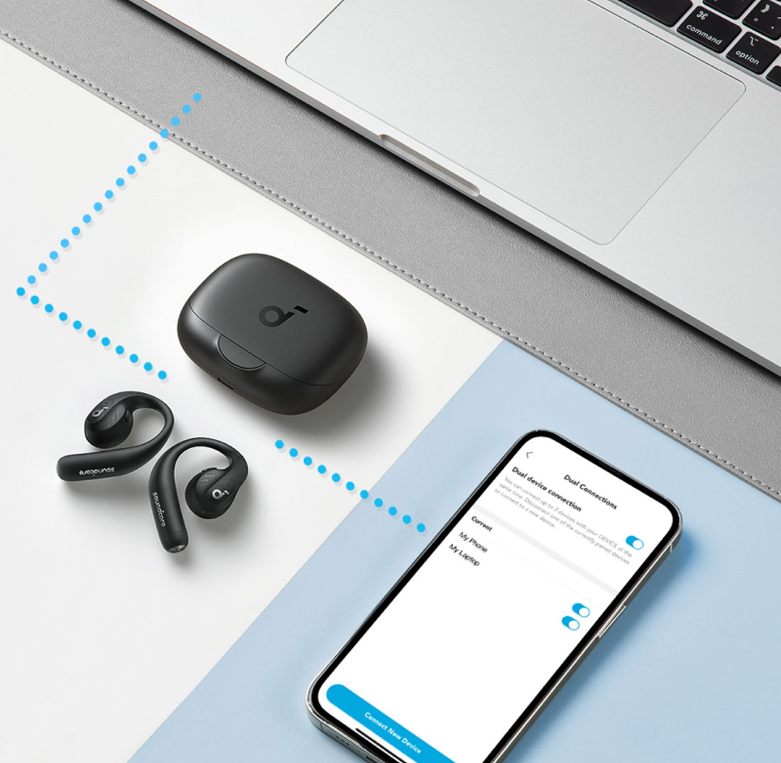 Он также поддерживает удобные многоточечные соединения, которые позволяют подключаться и переключаться между двумя устройствами одновременно, например, слушать музыку на смартфоне и проводить веб-конференции на ПК.