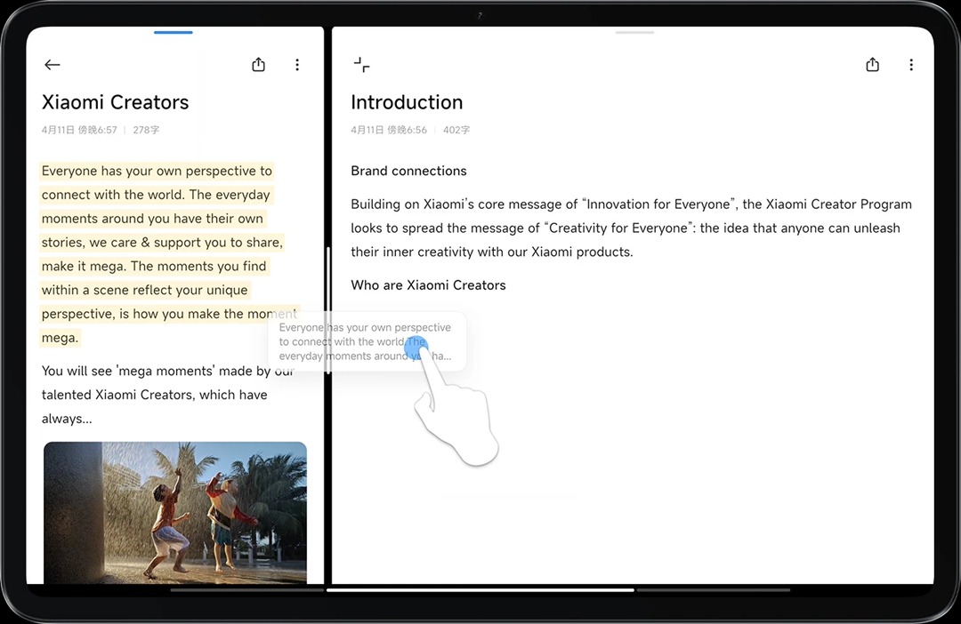 Благодаря функции разделения экрана вы можете открыть до четырех окон одновременно. Перетаскивайте тексты, изображения и файлами между приложениями одним касанием планшет Xiaomi Pad 6, для более эффективной повседневной работы.