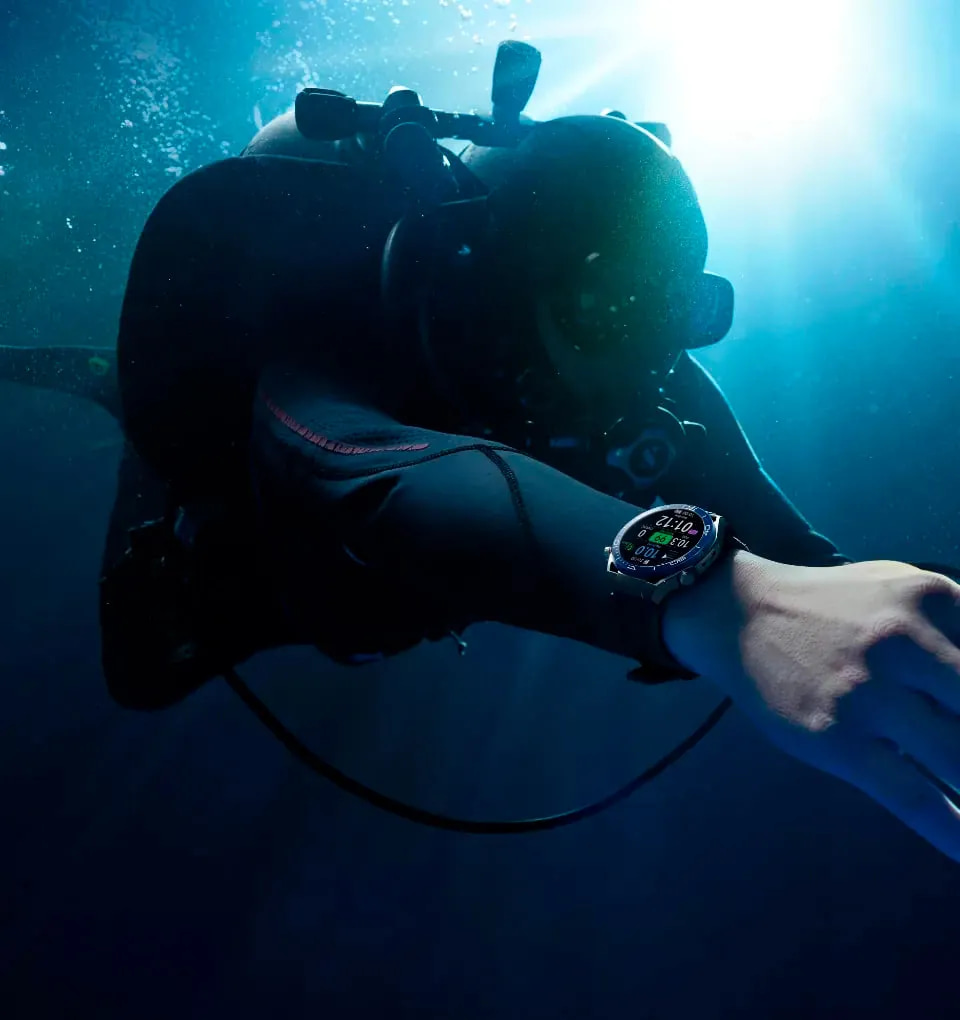 Huawei Watch Ultimate — это первые смарт-часы, предлагающие режим погружения с аквалангом на 100 метров, ряд алгоритмов профессионального погружения и рекомендации по погружению. Также доступны высокоуровневые показатели, такие как CEIL, чтобы дать вам непревзойденное спокойствие, когда вы погружаетесь в глубины океана.