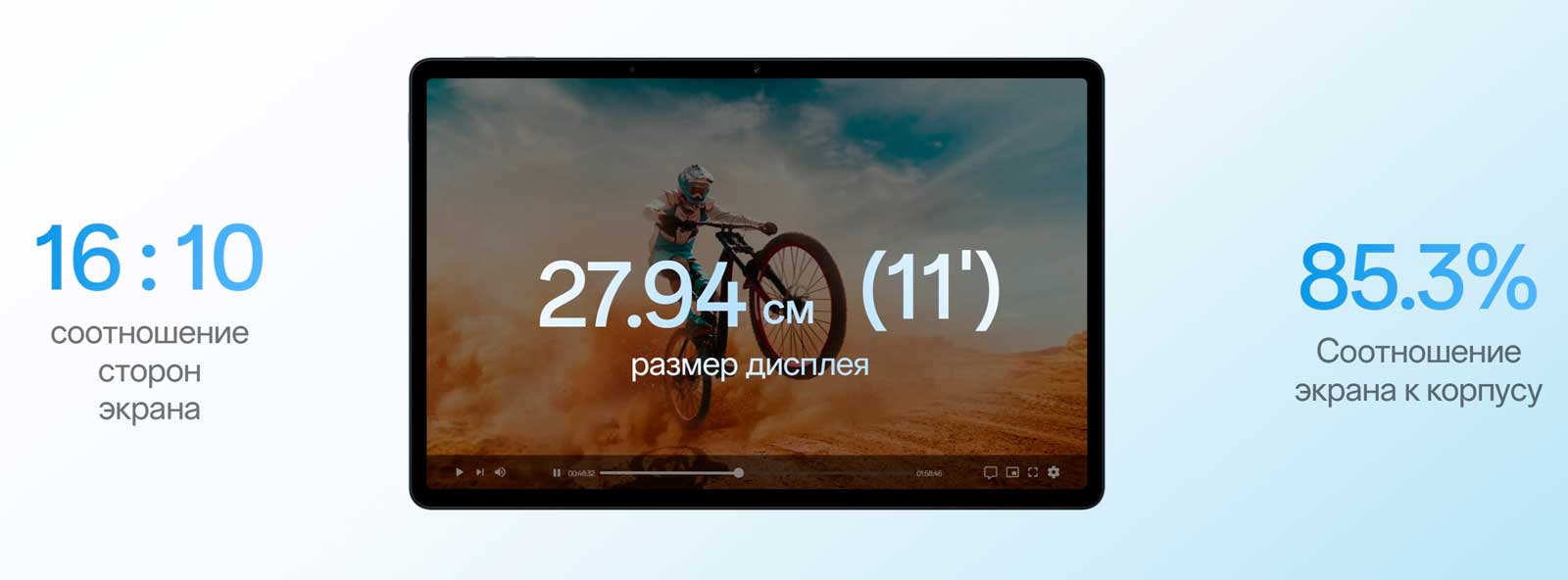 Увеличьте площадь экрана своего телефона втрое с дисплеем 27,94 см (11"). Кинематографическое соотношение сторон 16 : 10 и более тонкие рамки обеспечивают тройной эффект: меньше черных полос, больше погружения и больше экранного