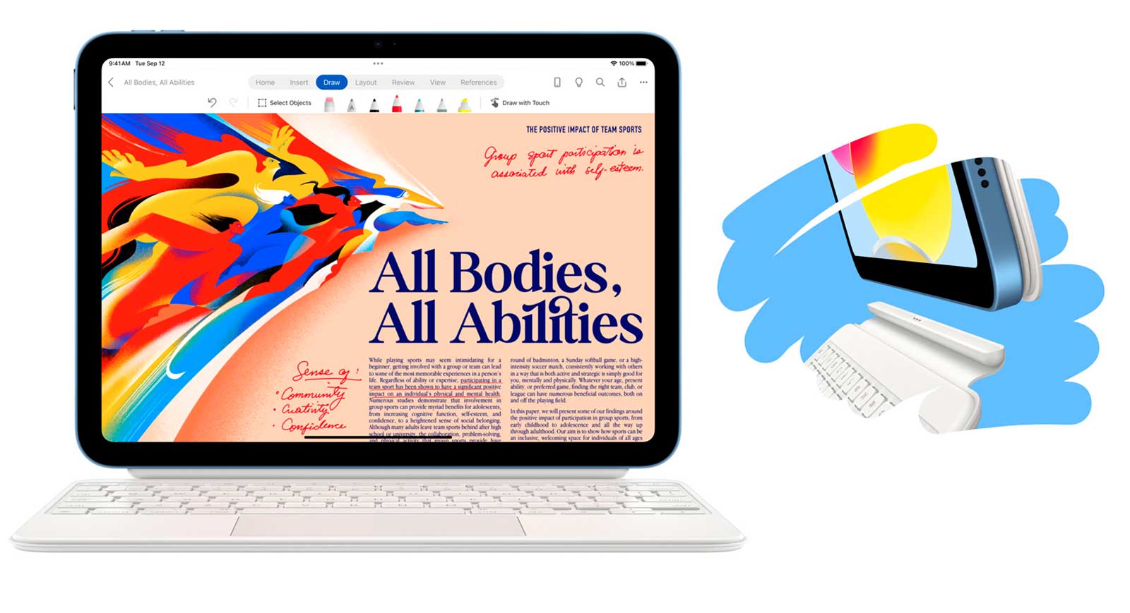 Выполняйте задачи – все на одном устройстве. Делайте заметки, сотрудничайте и легко переключайтесь между приложениями. iPad подходит для чего угодно – от круговых диаграмм до круговых тренировок.