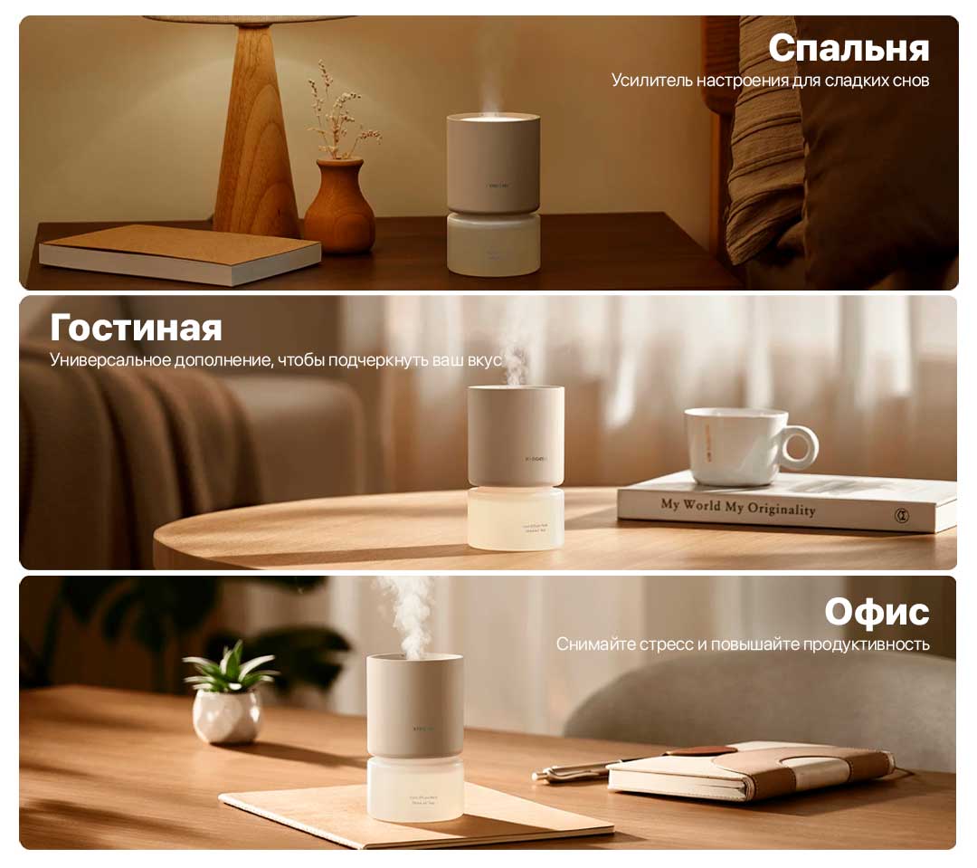 Это не просто аромадиффузор, но и стильный элемент интерьера с возможностью выбора из 16 миллионов цветов подсветки. Такое разнообразие позволяет создавать индивидуальные сценарии освещения, которые идеально сочетаются с настроением