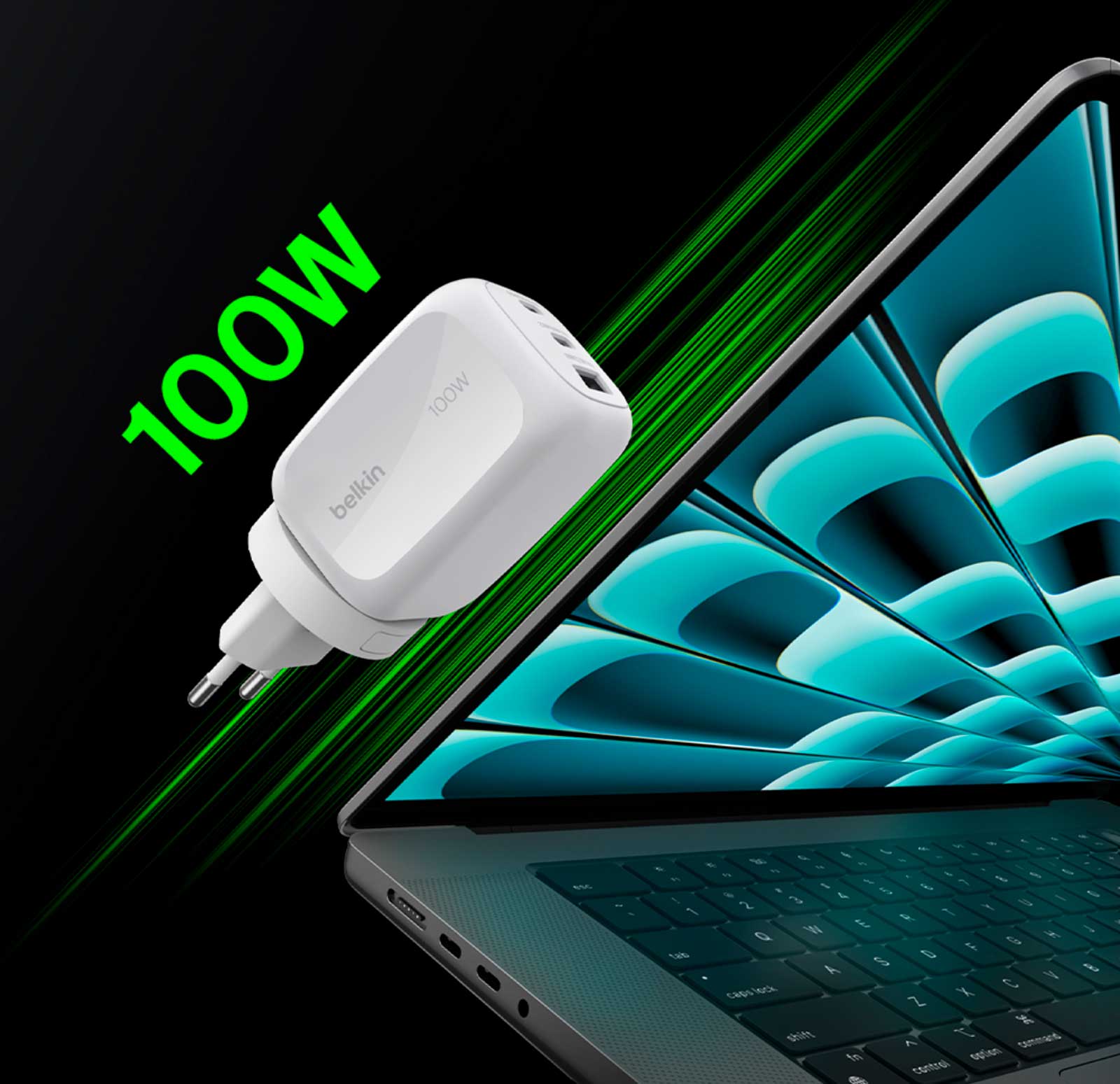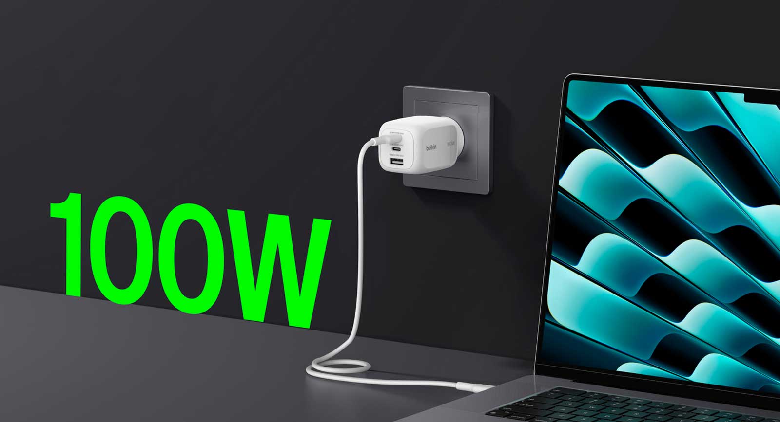 Быстрая зарядка для MacBook. Заряжает MacBook Pro до 50% за 38 минут для эффективной работы.