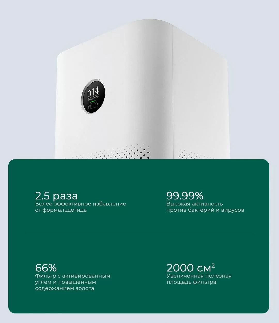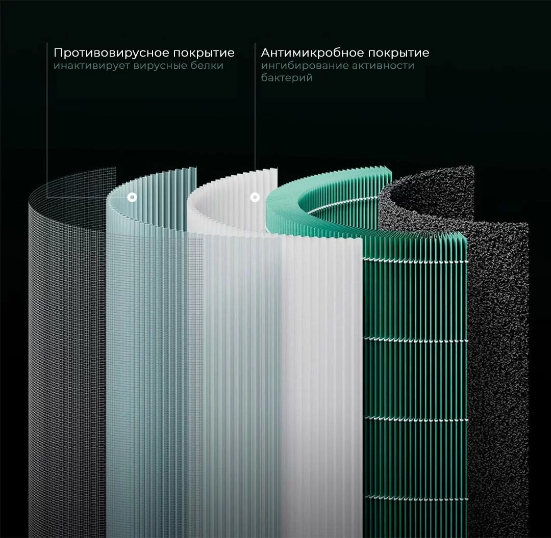 Мощный фильтрующий элемент позволяет эффективно удалить формальдегид, толуол и другие вредные вещества из воздуха.