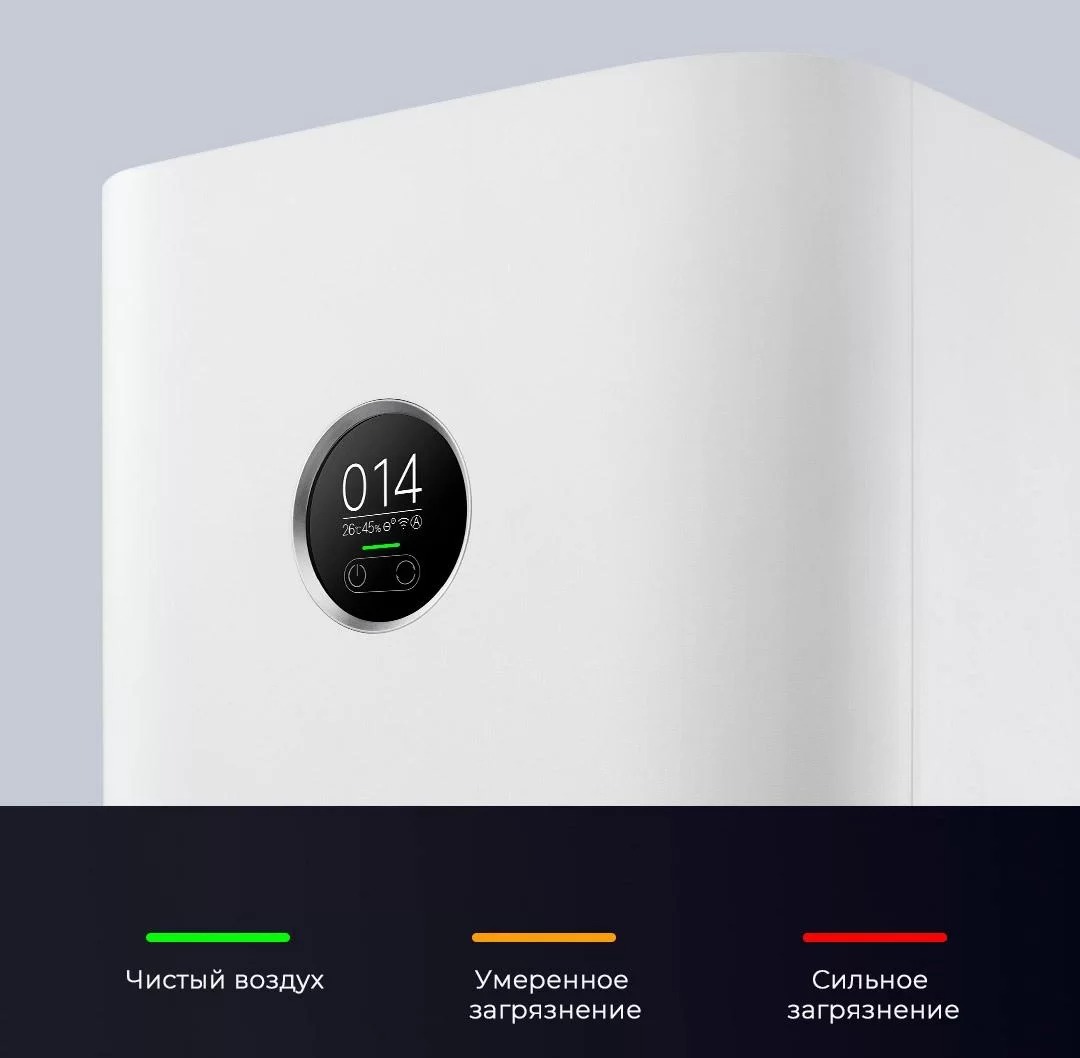 Xiaomi Air Purifier 4 оснащен современным OLED-дисплеем, который отображает данные о состоянии воздуха в режиме реального времени с помощью интуитивно понятной цветовой шкалы.