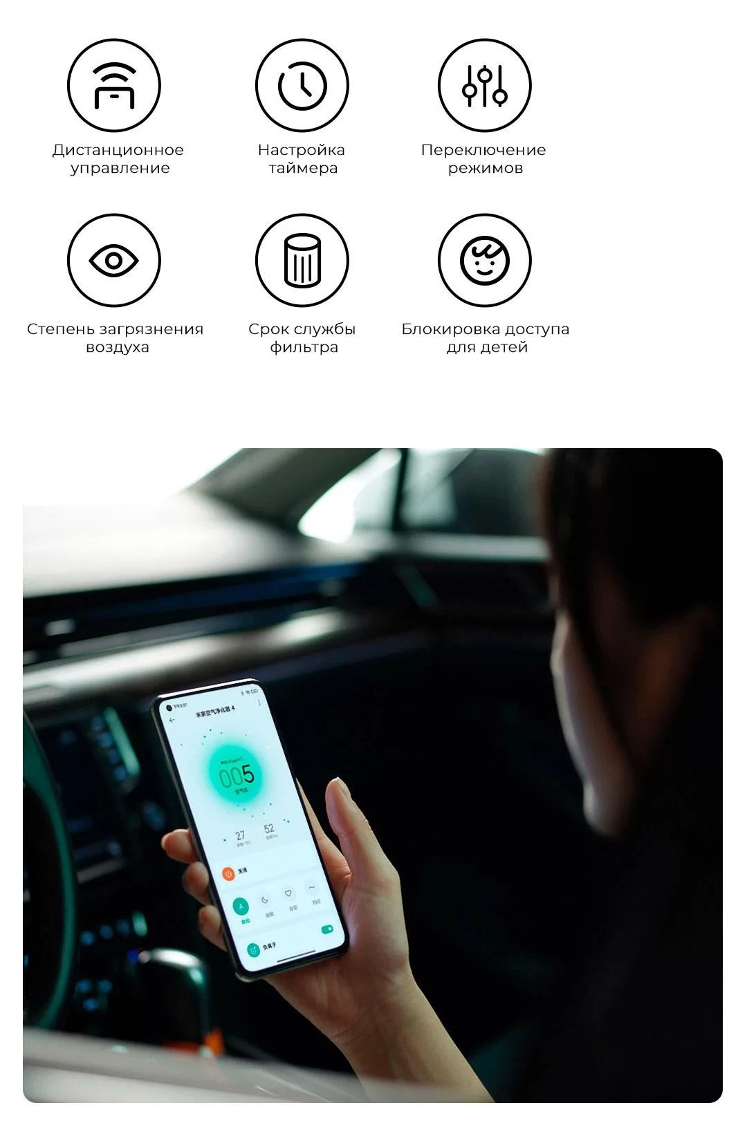Регулировка яркости экрана и тихий режим работы позволят наслаждаться чистым воздухом даже в часы отдыха.