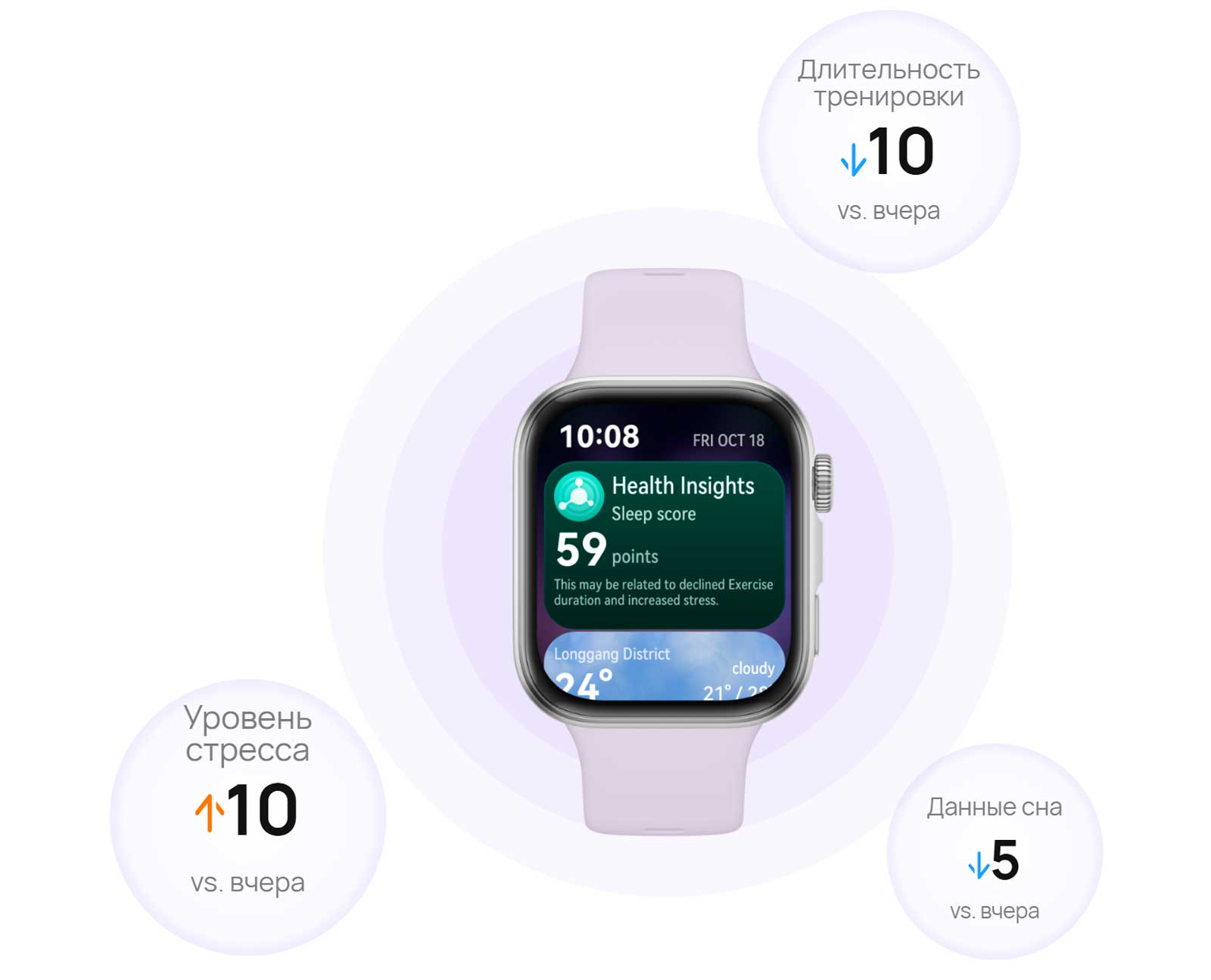 Познакомьтесь с приложением «Сводка здоровья», впервые представленным в серии HUAWEI WATCH FIT 4, и получайте новые полезные рекомендации для здорового образа жизни — от советов по контролю стресса и улучшению сна до руководств по тренировкам