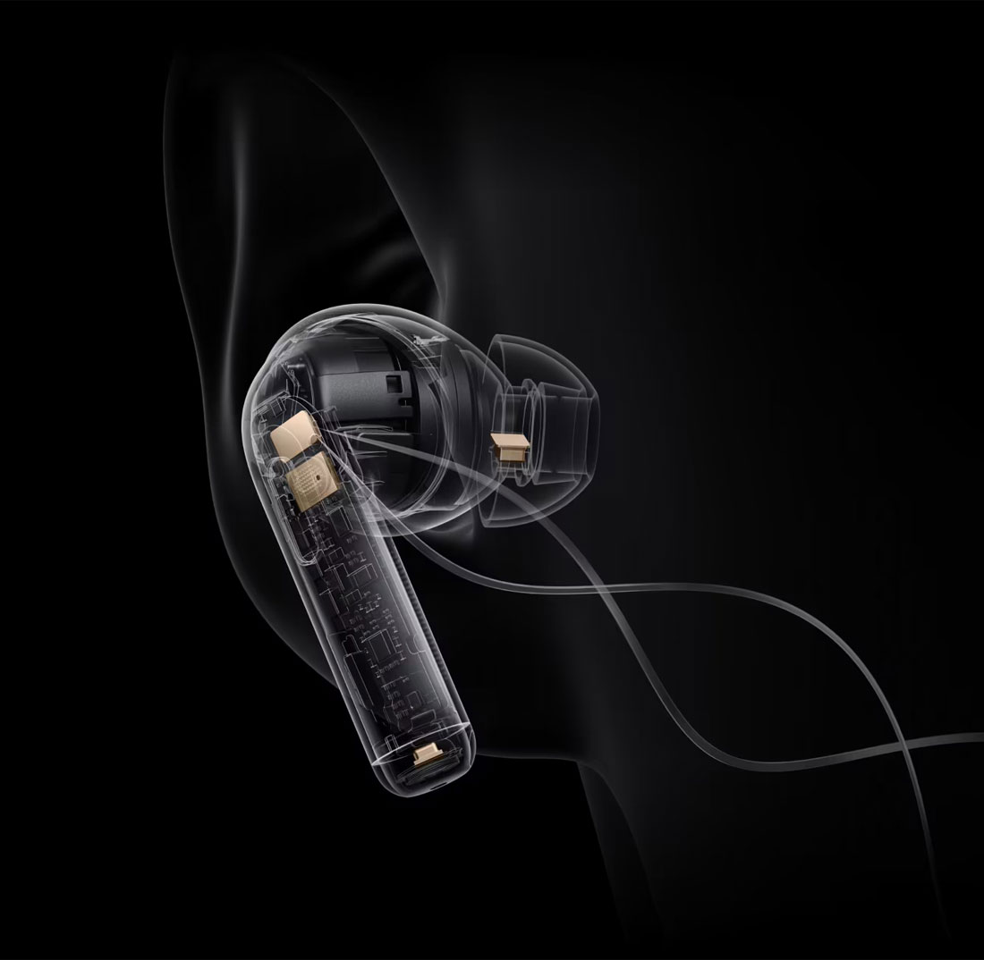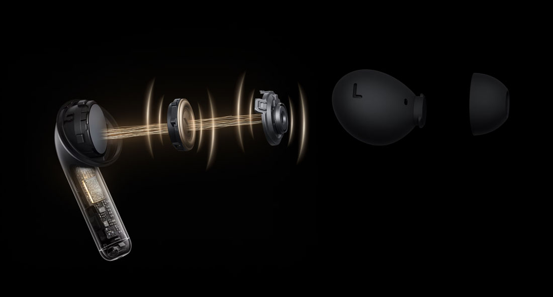 Двойные излучатели, разработанные совместно с компанией Dynaudio, поднимают качество звука на новую высоту благодаря наличию низкочастотного динамика 11mm и высокочастотного динамика 6mm. Выделенные DACs (цифро-аналоговые преобразователи) выступают в роли персональных звукорежиссеров, прецизионно настраивая каждый излучатель для получения отточенного индивидуального звука с текстурированными басами, нюансированными высокими нотами и обширным звуковым пространством.