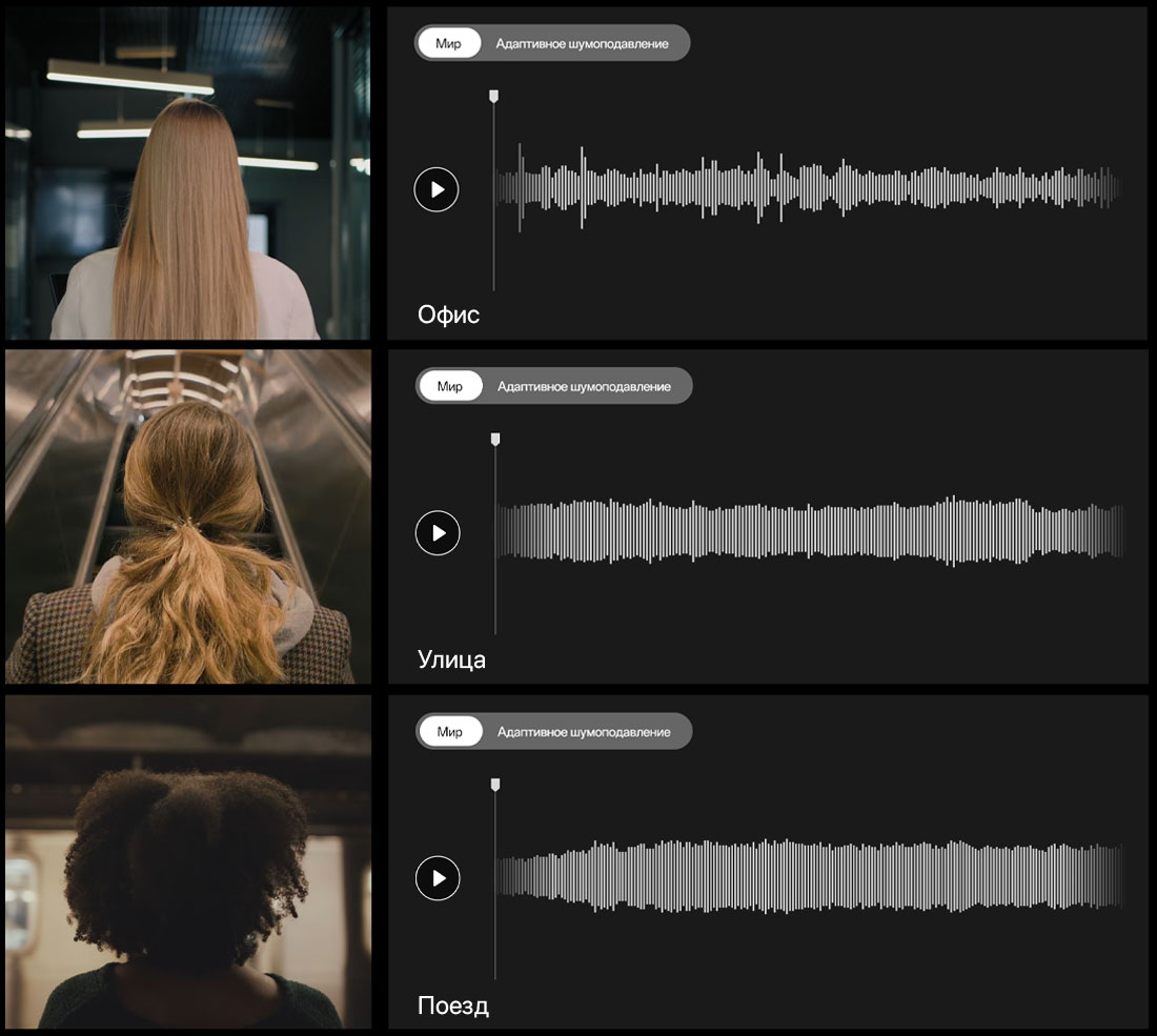 Смахните для регулировки громкости. Сожмите, чтобы включить адаптивное шумоподавление