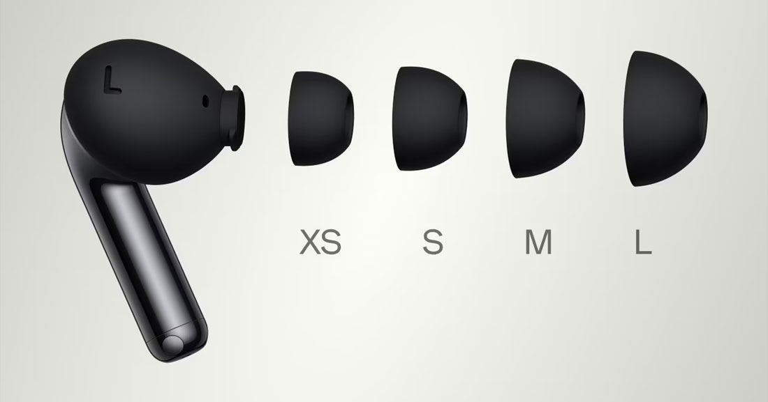 OnePlus Buds Pro 3 поставляются с новыми амбушюрами размера XS. 4 разных размера обеспечивают идеальную посадку