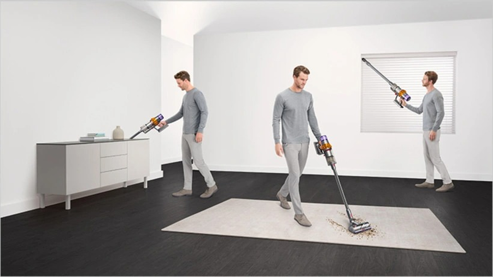 Многофункциональность беспроводной технологии от Dyson упрощает уборку всего дома. Мощная очистка полов, труднодоступных мест и матрасов.