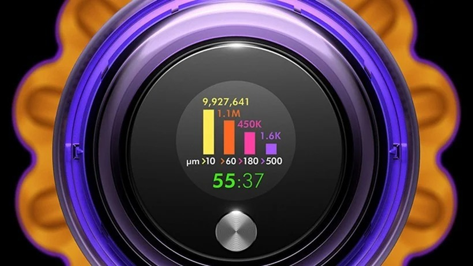 14 циклонов создают силы мощностью до 100 000 g для улавливания пыли и мусора из воздушного потока без потери мощности всасывания.