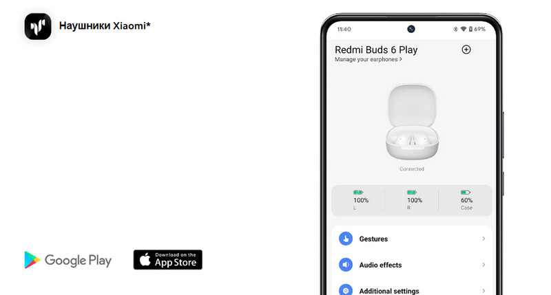 С помощью приложения Xiaomi Earbuds настраивайте удобные для себя жесты сенсорного управления и обновляйте прошивку.