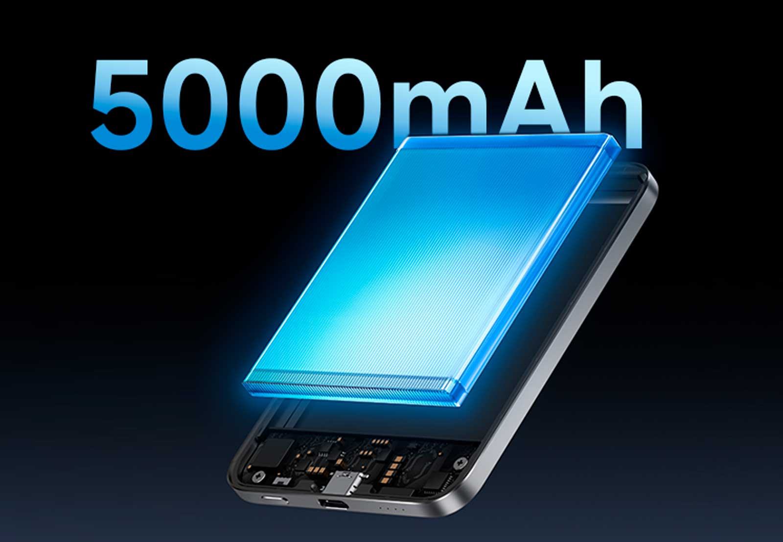 Внутри корпуса размещена высокоплотная кремниево-углеродная батарея ёмкостью 5000 мАч, отличающаяся улучшенным соотношением энергии и объёма. Данная технология позволяет обеспечить примерно один полный цикл зарядки iPhone, сохраняя при этом минимальную толщину корпуса. Использование кремниево-углеродной структуры подчёркивает инженерный подход Xiaomi и ориентацию на инновационные решения в сегменте портативных аккумуляторов.