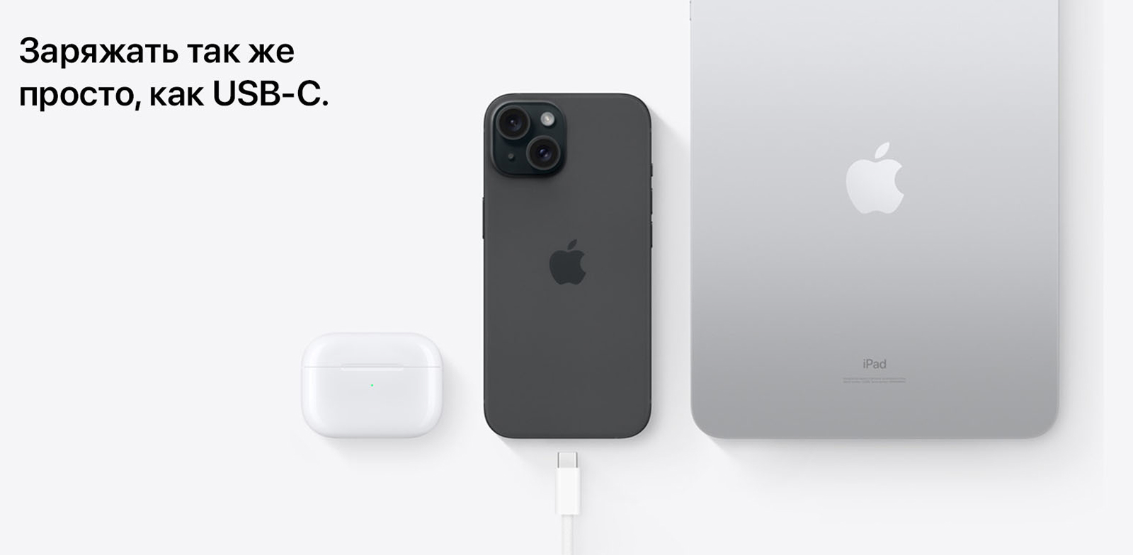 Новый разъем USB-C позволяет подключать ваш Mac или iPad к тому же кабелю, который вы используете для зарядки iPhone 15. Вы даже можете использовать iPhone 15 для замены Apple Watch или AirPods. Прощай, кабельный беспорядок.
