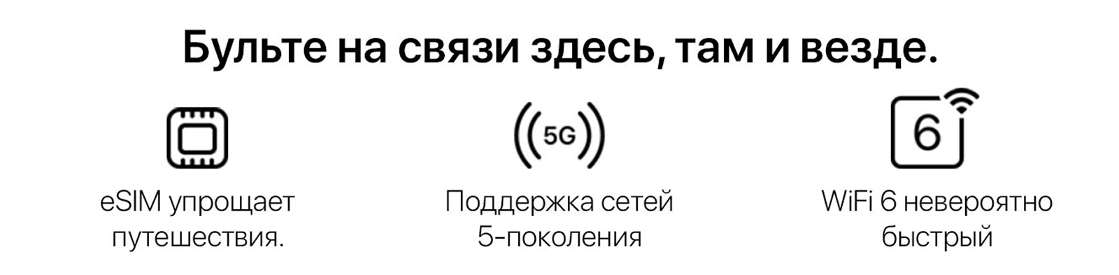 Просто активируйте eSIM для страны, которую вы посещаете, перед отъездом. Или когда вы приедете. 5G обеспечивает сверхбыструю работу, так что вы можете совершать высококачественные звонки по FaceTime, быстро загружать файлы и играть в многопользовательские игры в режиме реального времени на ходу. Wi-Fi 6 работает очень быстро. Таким образом, вы можете транслировать фильмы в самом высоком разрешении. И совершайте звонки по Wi-Fi без сучка и задоринки.