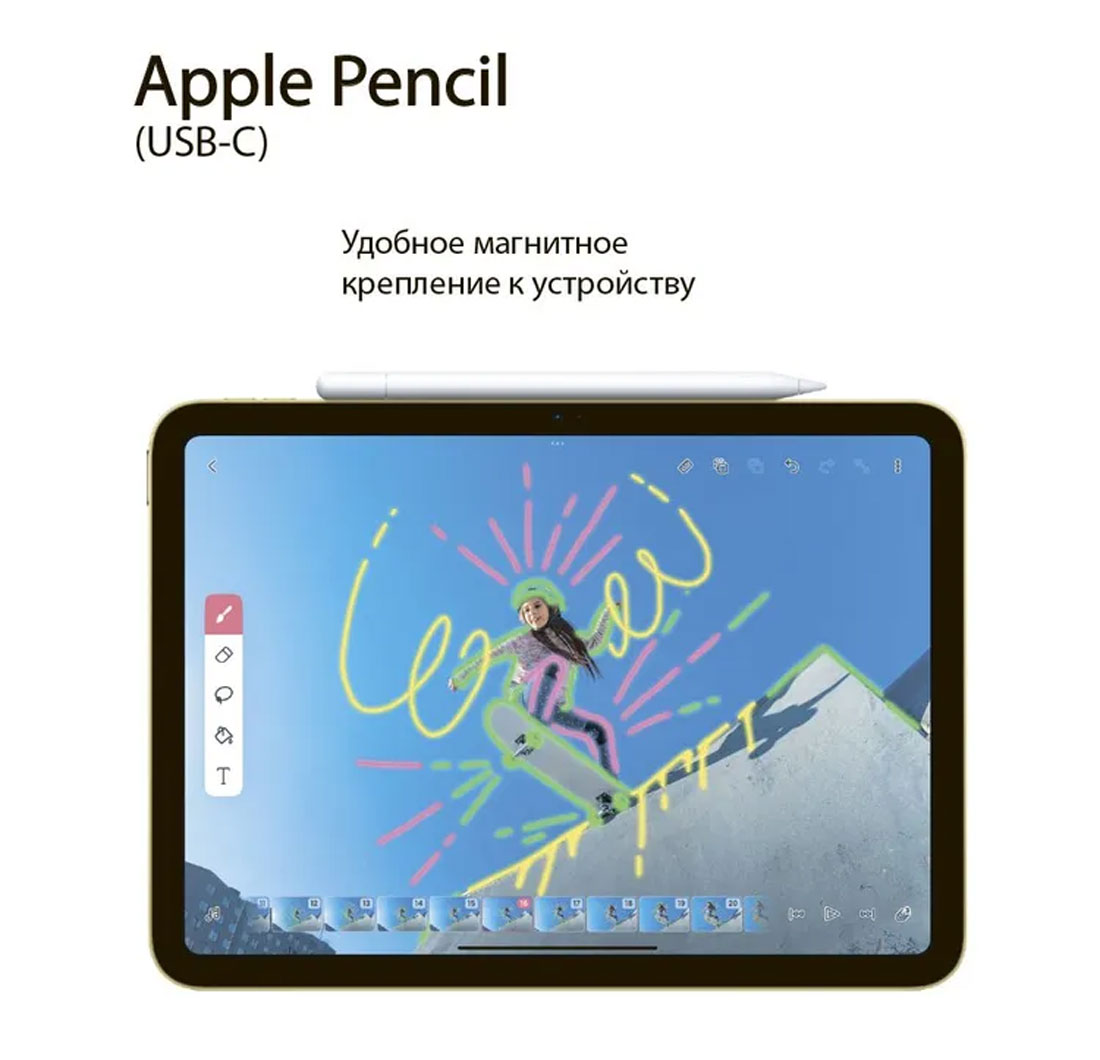 сенсорная область — дважды коснувшись ее, можно мгновенно сменить используемый инструмент. Благодаря особому дизайну с одной плоской гранью Apple Pencil примагничивается к iPad Pro, iPad Air или iPad mini для зарядки и создания пары