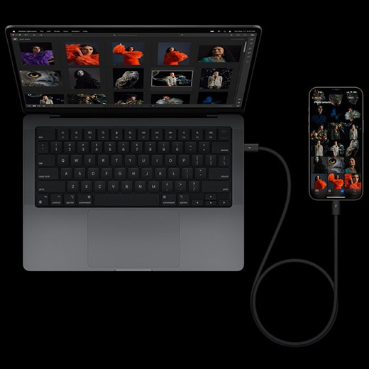 iPhone 15 Pro Max теперь используют разъем USB-C – общепринятый стандарт для зарядки и передачи данных, позволяющий заряжать iPhone, Mac, iPad и обновленные AirPods Pro 2 с помощью одного кабеля. Пользователи могут также заряжать AirPods или Apple Watch непосредственно от iPhone с помощью этого разъема USB-C. Поддерживает USB-С для передачи данных со скоростью до 10 гигабит в секунду, что в 20 раз быстрее, чем раньше.
