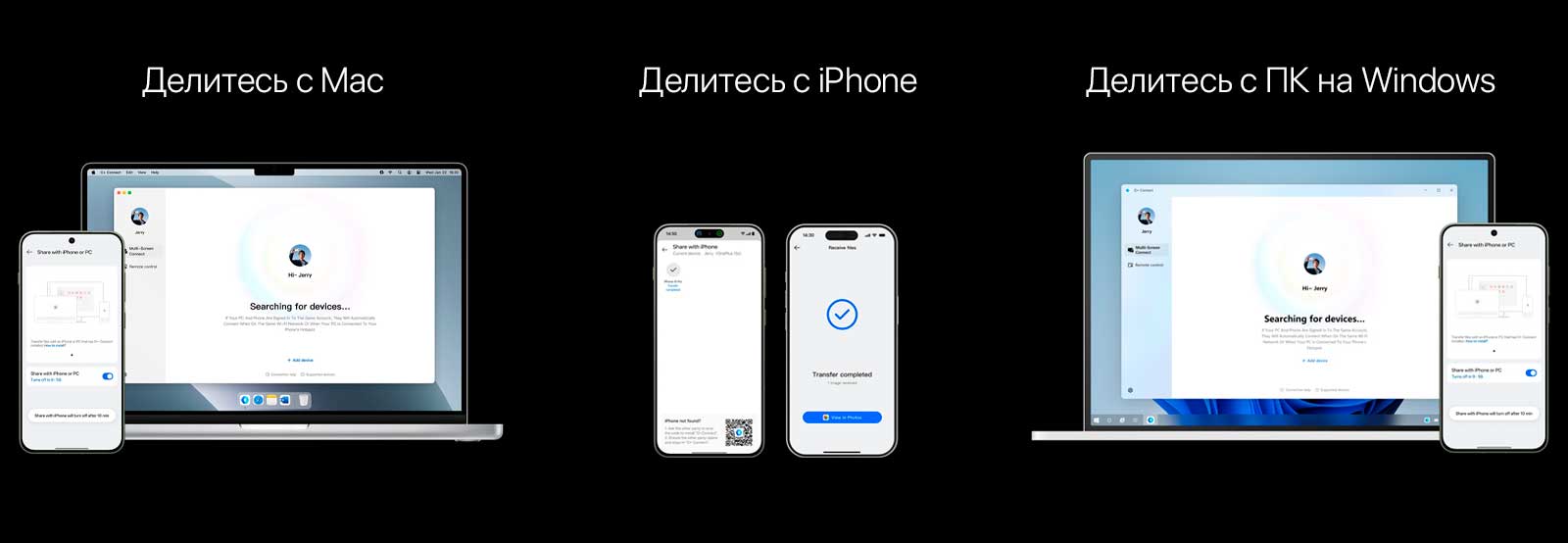 Никаких посредников. Делитесь файлами с Mac, ПК на Windows, другими не Android смартфонами.