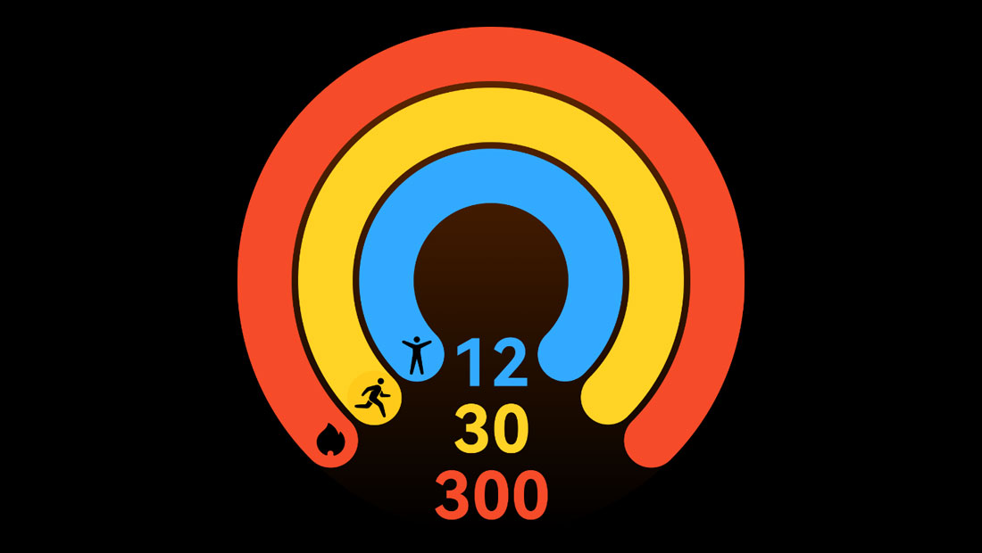 С функцией «Кольца активности 2.0» вы можете установить ежедневные цели для трех колец активности — «Движения», «Тренировки» и «Вставания» — и отслеживать количество сожженных калорий, длительность тренировок и количество часов активности.