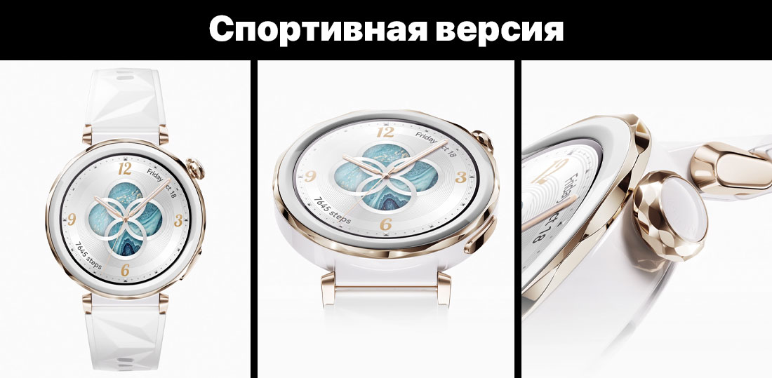 Корпус из нанокристаллической керамики и текстурированный белоснежный фторэластомеровый ремешок сочетают в себе страсть и моду. Экран из сапфирового стекла подчеркивает премиальность дизайна, искрясь и сверкая. Безель и поворотная кнопка имеют красивые золотистые акценты, придающие часам вид дорогого украшения.