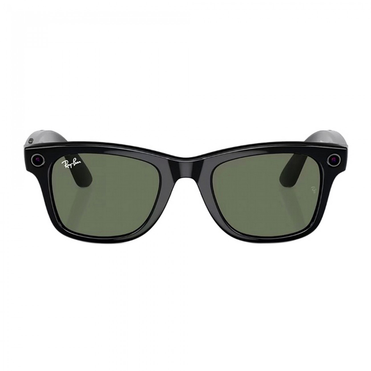 Блестящие черные оправы с классическими линзами G15 Green. Новые технологии в стиле Ray-Ban. Попробуйте классические линзы Ray-Ban с равномерным оттенком для стабильного и вневременной эстетики. Функции прослушивания, вызова, записи и прямой трансляции плавно интегрированы в классическую рамку.